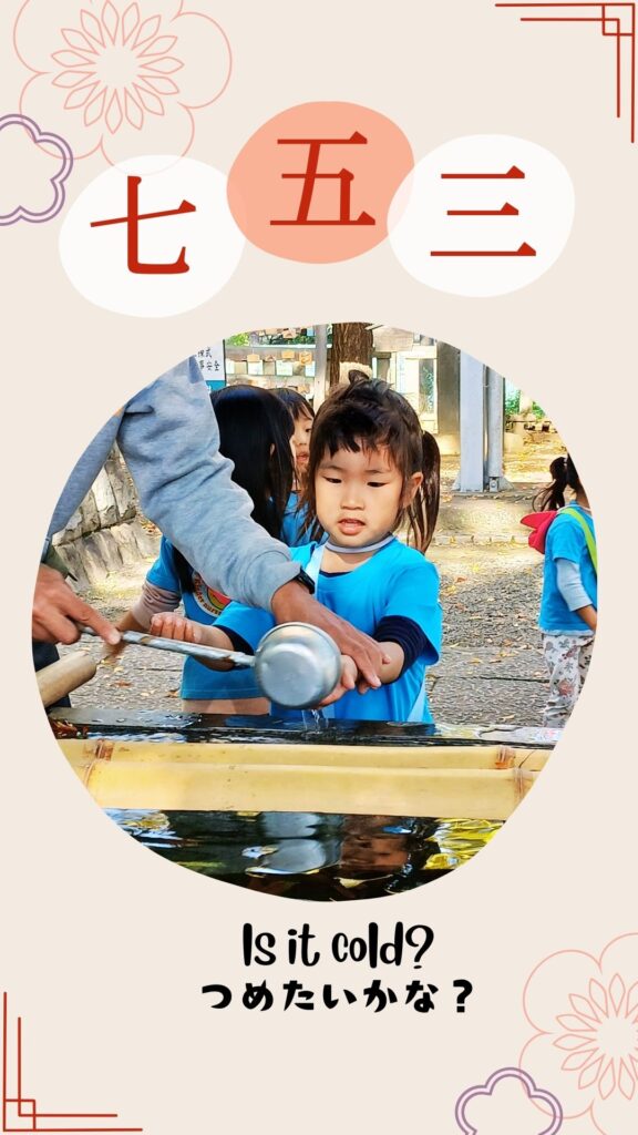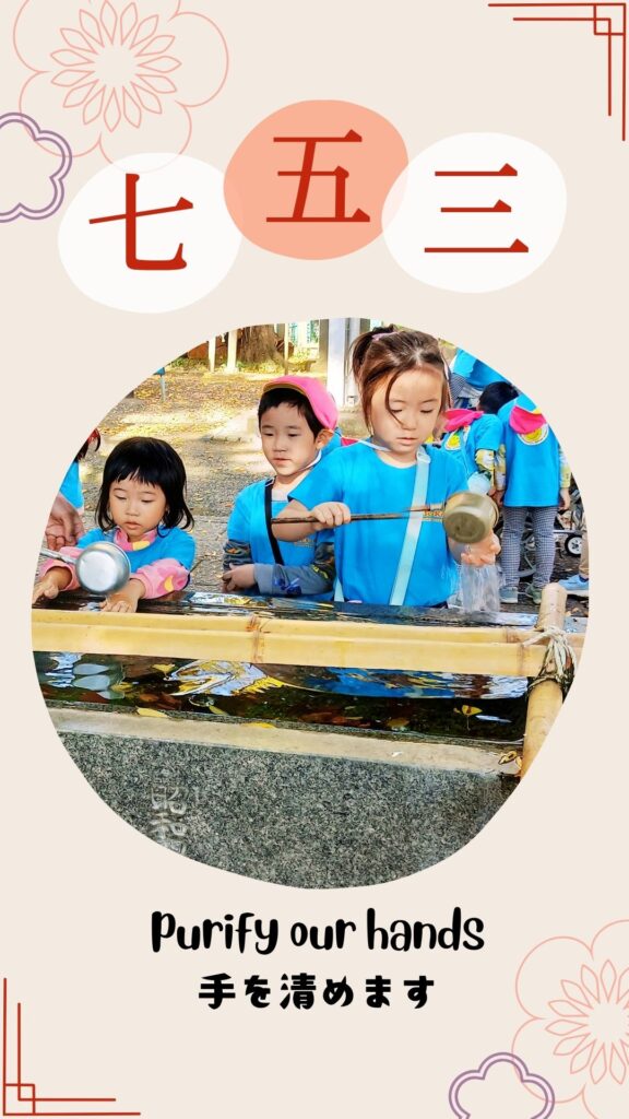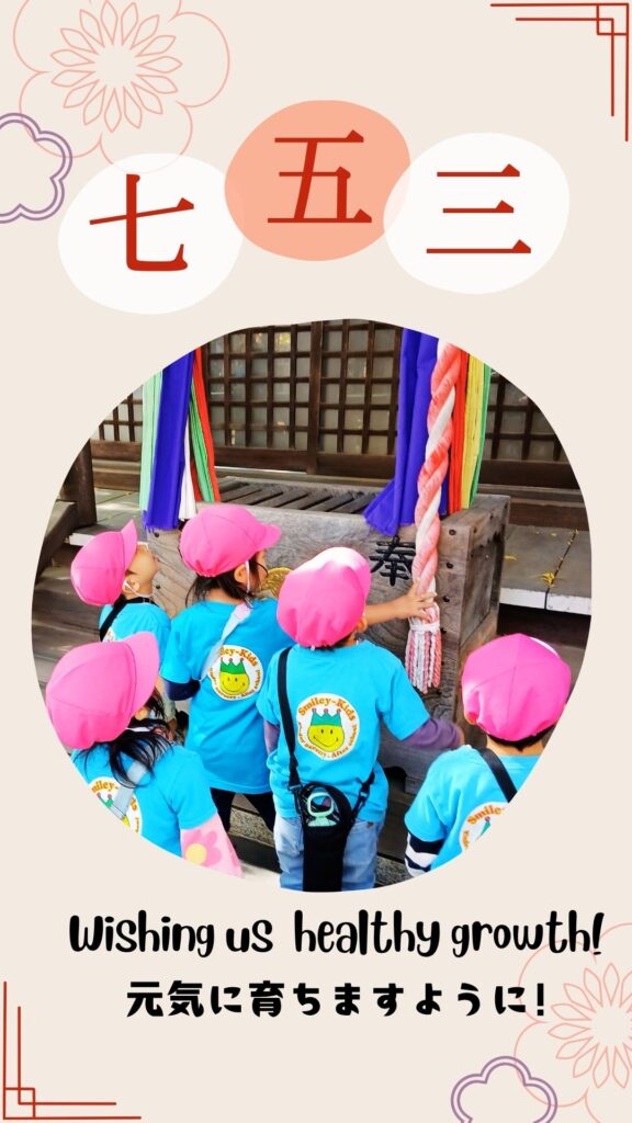 3歳5歳を迎えられたみなさま、おめでとうございます。 スマイリーでも、今年も近くの神社にお参りに行ってきました。厳かにお参りする子どもたちです。 さすが、LIONさんは上手ですね! どきどき!きっとお水は冷たいけど、がんばってるね! みんなでお祈り。神様、どうぞみんなをお見守りください。
