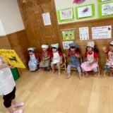 園内で秋祭りを行いました! こちらは予行演習中です。お店屋さんもお客さんも練習バッチリ! かきごおりひとつ、くださーい! チョコバナナも、くださーい! はいはい、ピンクのですね! 本番は甚平や浴衣を着て、お祭りを楽しみました! わくわく、何がでてくるのかな?? どのいろのヨーヨーがいいかなあ 笑顔いっぱいの一日でした! みんな、にあってますね♪