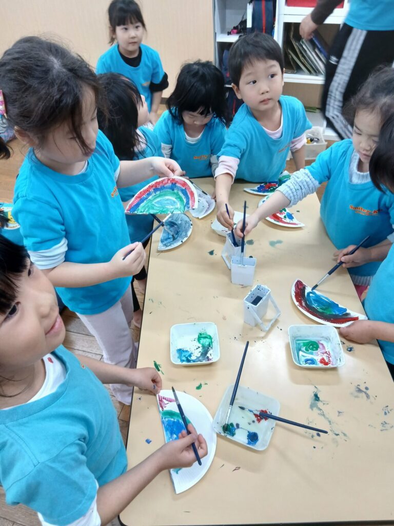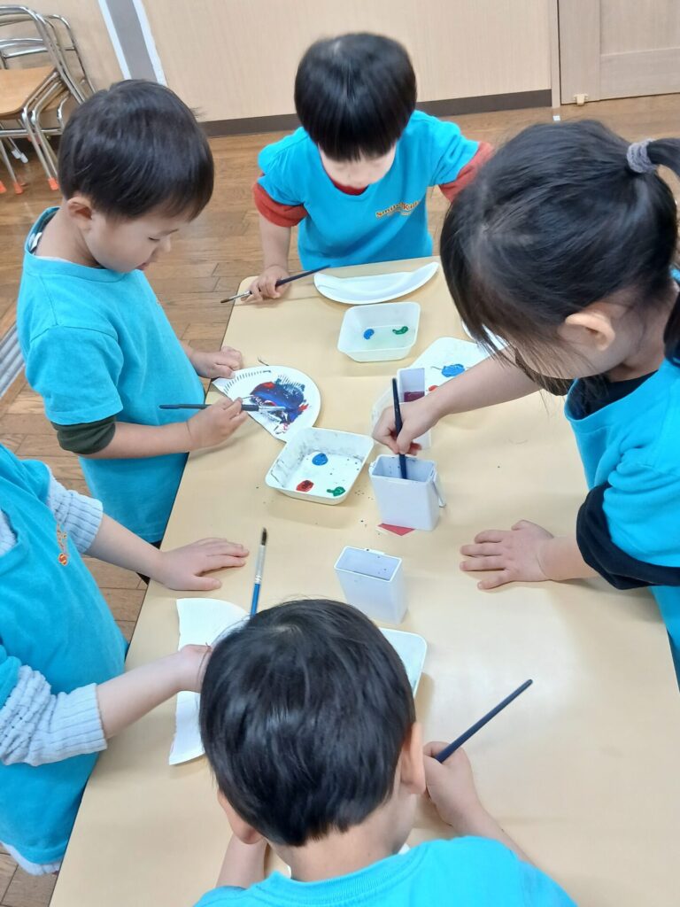 もうすぐ1月も終わり、節分がやってきます。みんなで紙皿を使った鬼さんのお面を作りました!