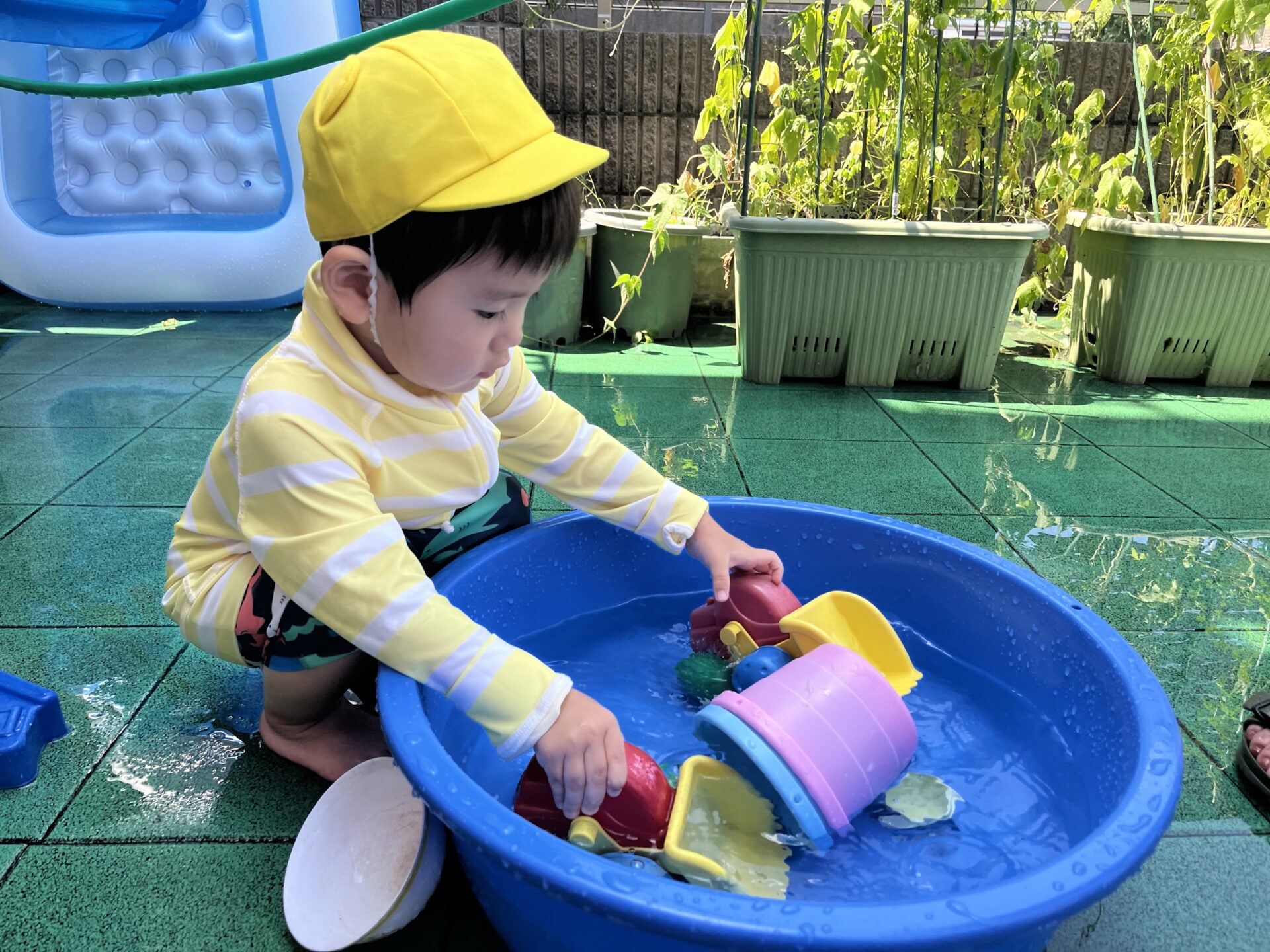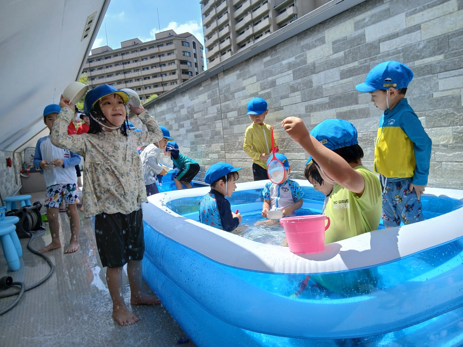 エンジェルプラネット中川園 戸外活動 暑い日が続いているので毎日プール遊びをとても楽しみにしている子どもたち🔫 比較的涼しい日は公園でめいっぱい体を動かします😆 熱中症に気を付けて、暑い夏も楽しく過ごしています♪