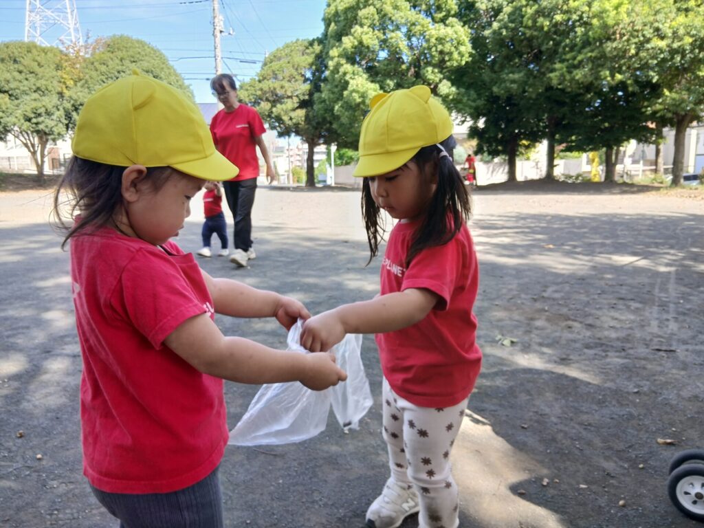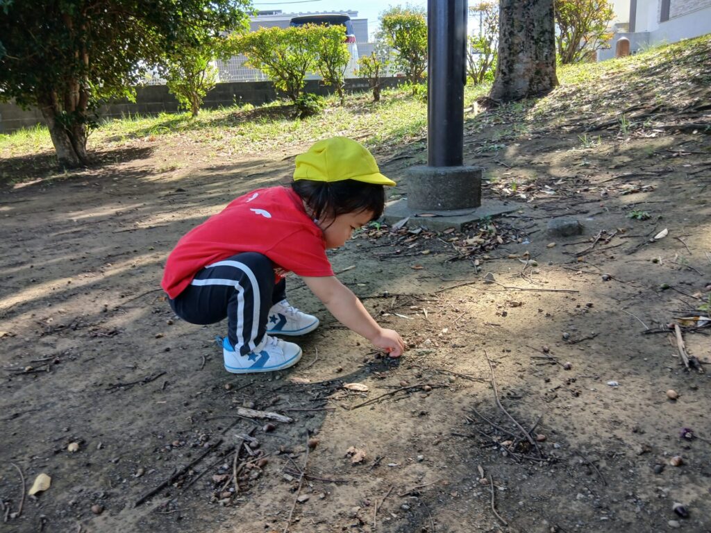 子どもたちも、公園でさっそく秋のお楽しみを見つけました♪