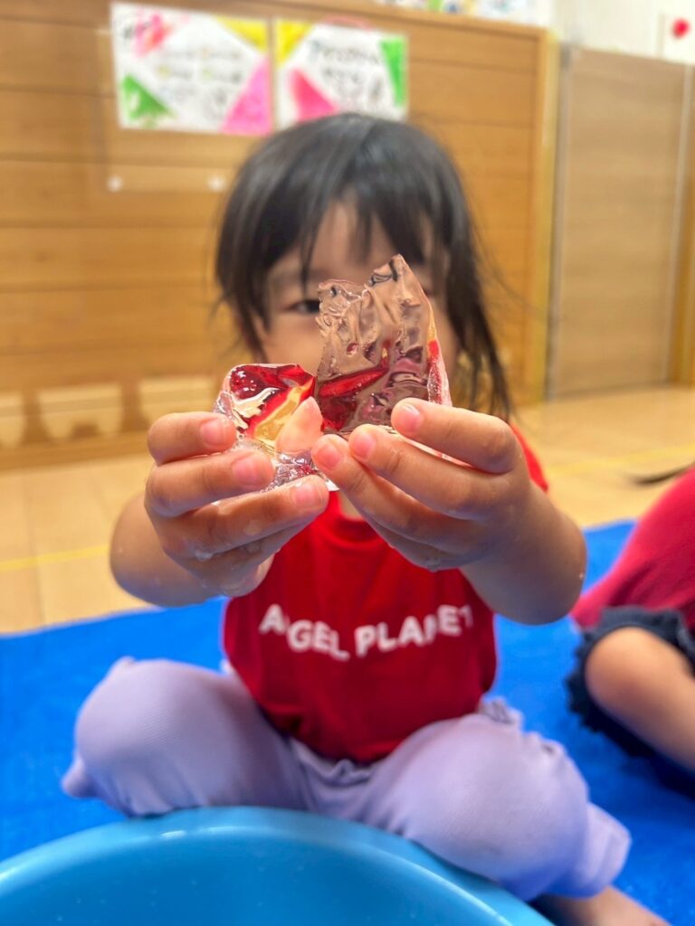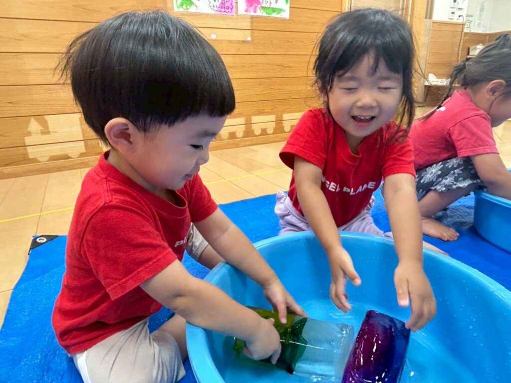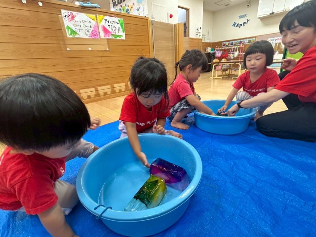 五感を刺激する夏らしい遊びです。ぜひお家でもやってみてくださいね!