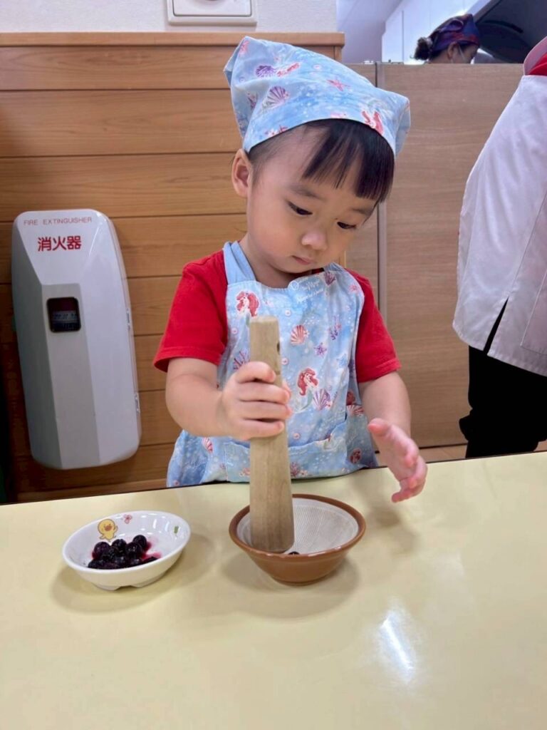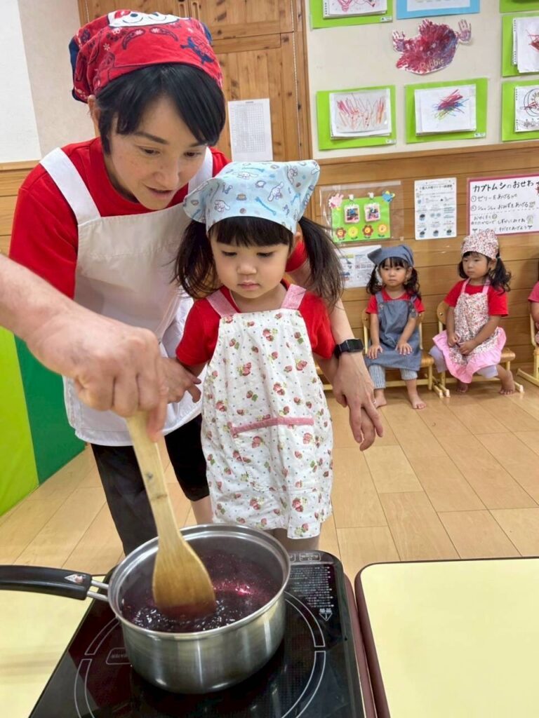 みんな、先生とのお約束をよく守り、ちいさなお母さんのようにてきぱきとジャム作りができました♪